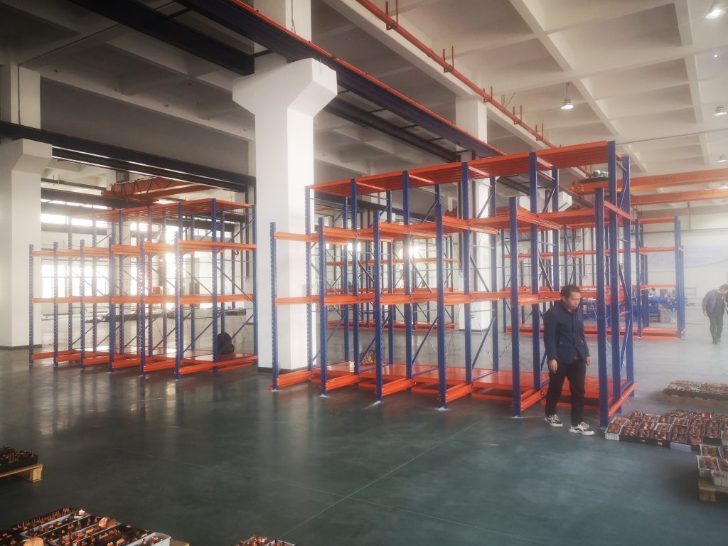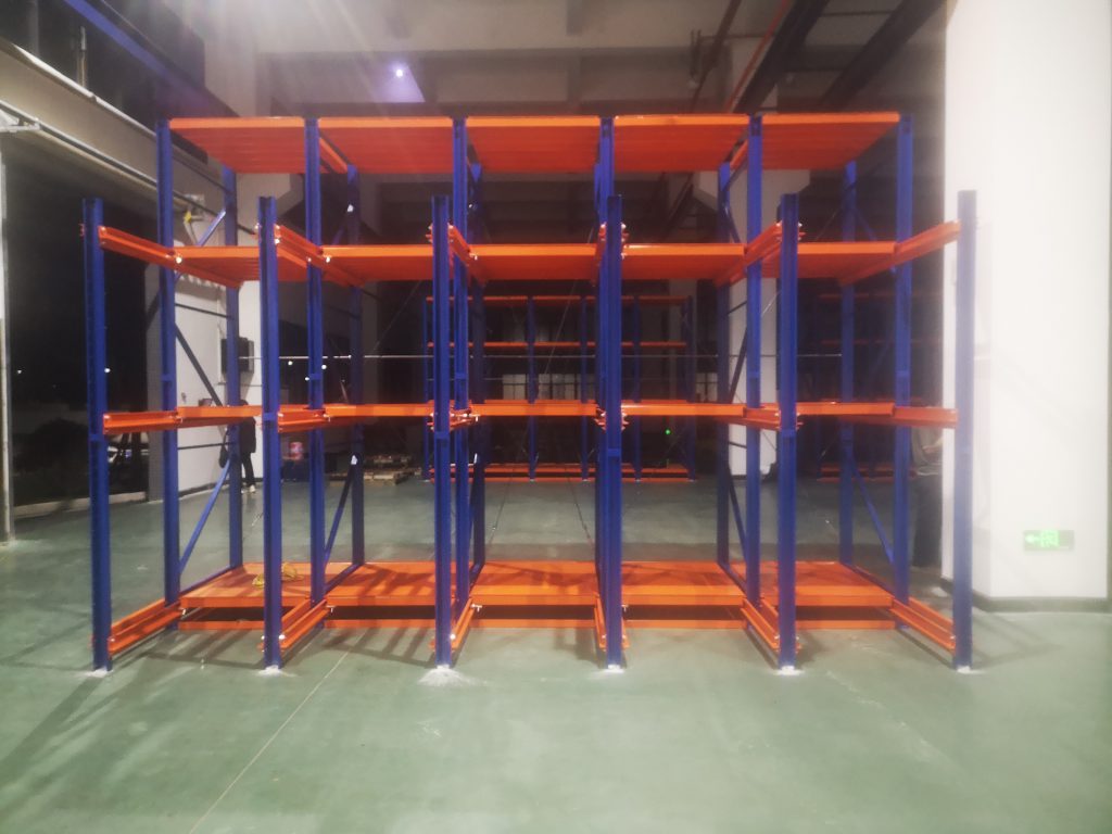 特殊定制規格,每一塊抽屜板長1300mm,深度900mm,抽出800mm;貨架總高度3500mm;貨架立柱使用博儲多道輥壓成型模具架立柱,層板加強使用大型號40*60型鋼;滑槽軌道下方三角加強,保證底部載重3000KG,中上層2000KG;