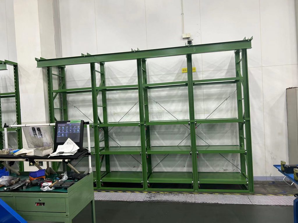 今天去無(wú)錫安裝了綠色的半抽模具架,客戶(hù)早早就把安裝空地整理好了非常配合